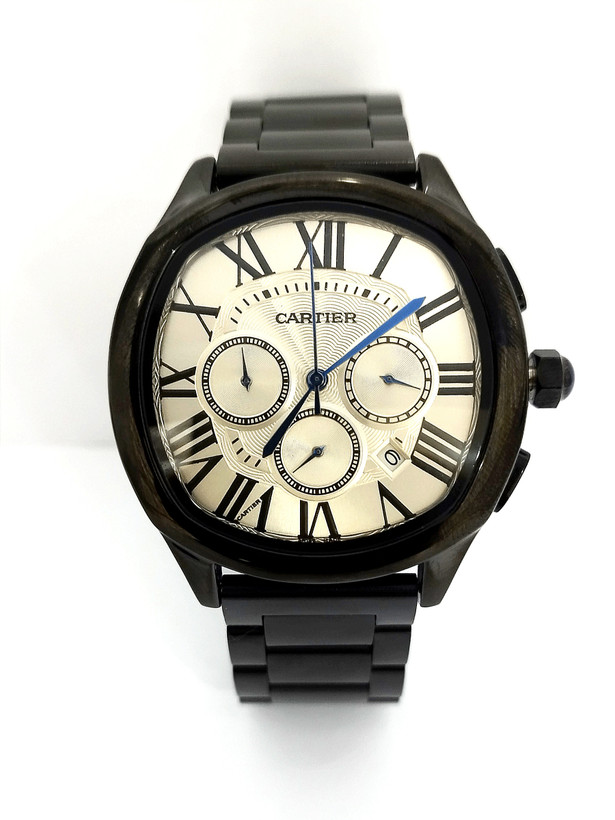 ساعت مچی مردانه و پسرانه برند کارتیر در رنگ مشکی بند استیل و صفحه سفید صدفی رنگ