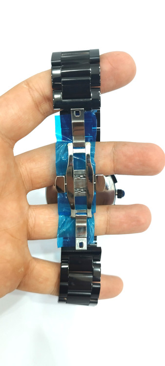 رنگ ثابت با ضمانت شیشه کریستال تلسکوپی ضد خش ضد آب در حد شستشو سه موتور روز شمار سه موتور فعال تقویم دار ثانیه شمار بند استیل رنگ مشکی قفل پروانه ای جدید موتور کوارتز نوع کار موتور همراه باطری