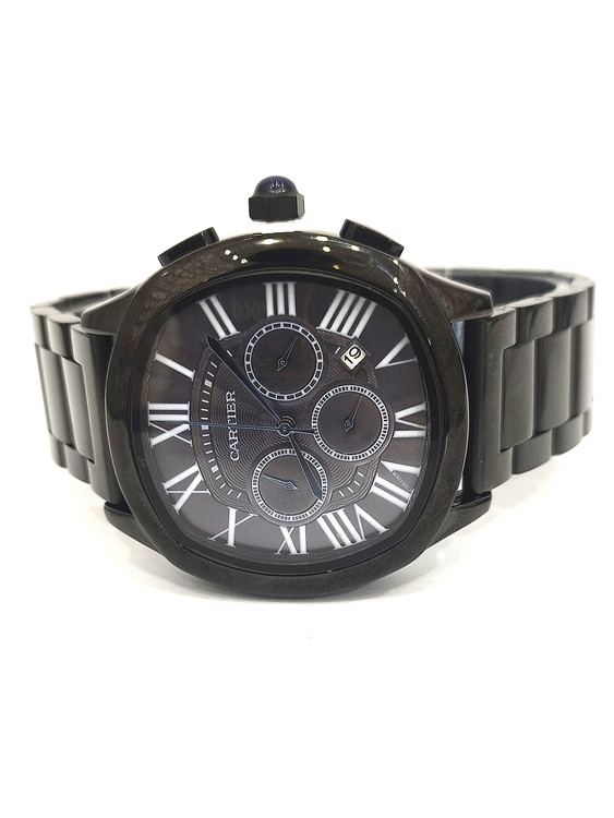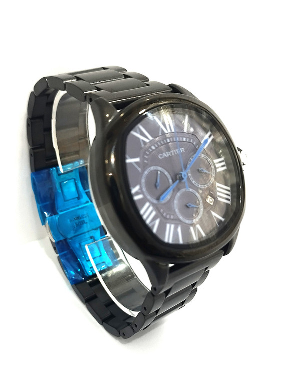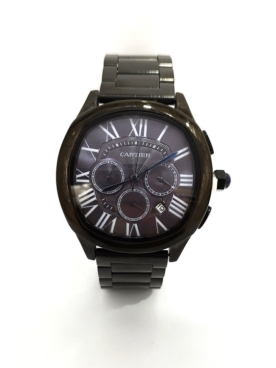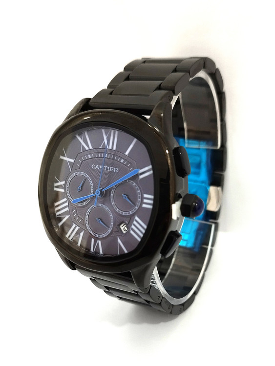 ساعت مچی مردانه برند کارتیر در رنگ مشکی بند استیل و صفحه سرمه ای رنگ