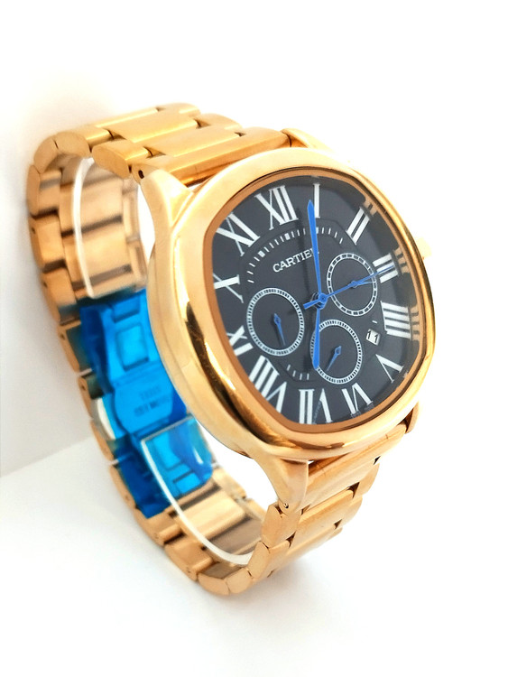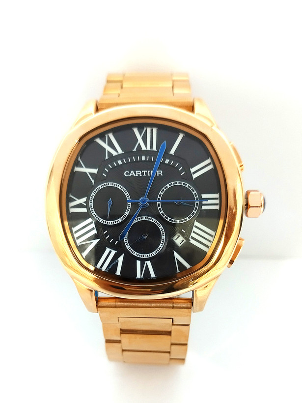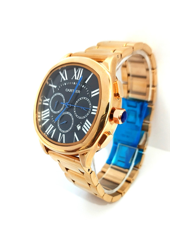ساعت مچی مردانه برند کارتیر در رنگ رزگلد بند استیل و صفحه مشکی رنگ