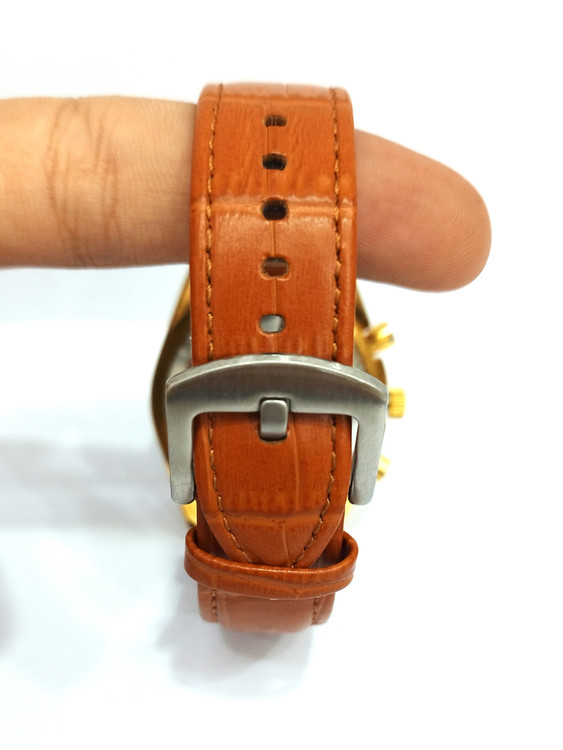 رنگ ثابت با ضمانت شیشه کریستال تلسکوپی ضد خش ضد آب در حد شستشو سه موتور روز شمار سه موتور فعال تقویم دار ثانیه شمار بند چرم اصل رنگ قهوه ای روشن و قفل کمربندی جدید موتور کوارتز نوع کار موتور همراه باطری