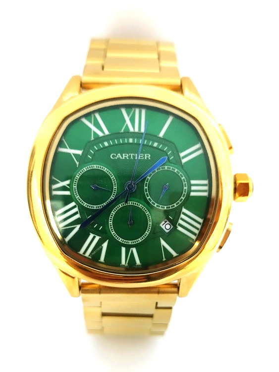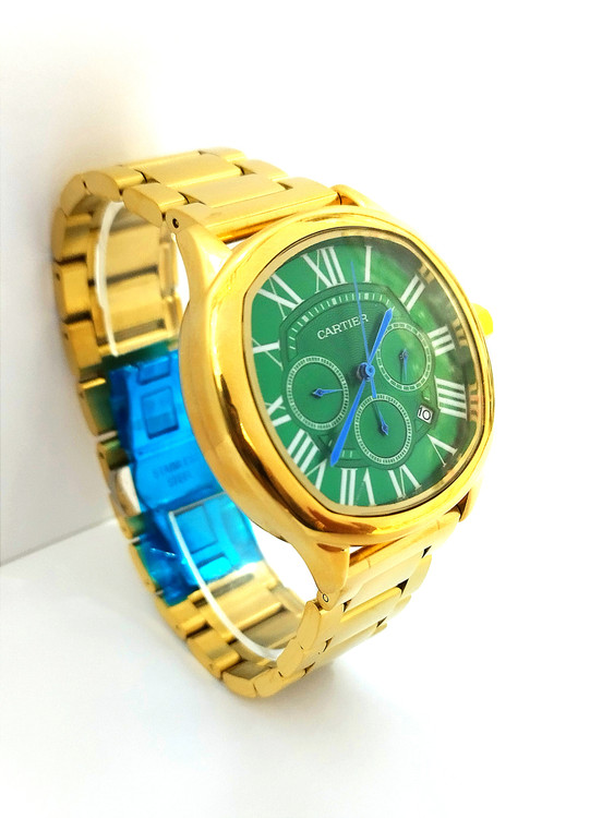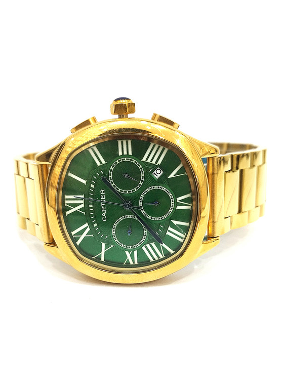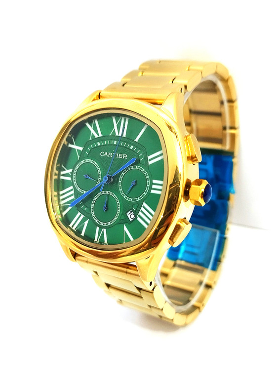 ساعت مچی مردانه برند کارتیر در رنگ طلایی بند استیل و صفحه سبز رنگ