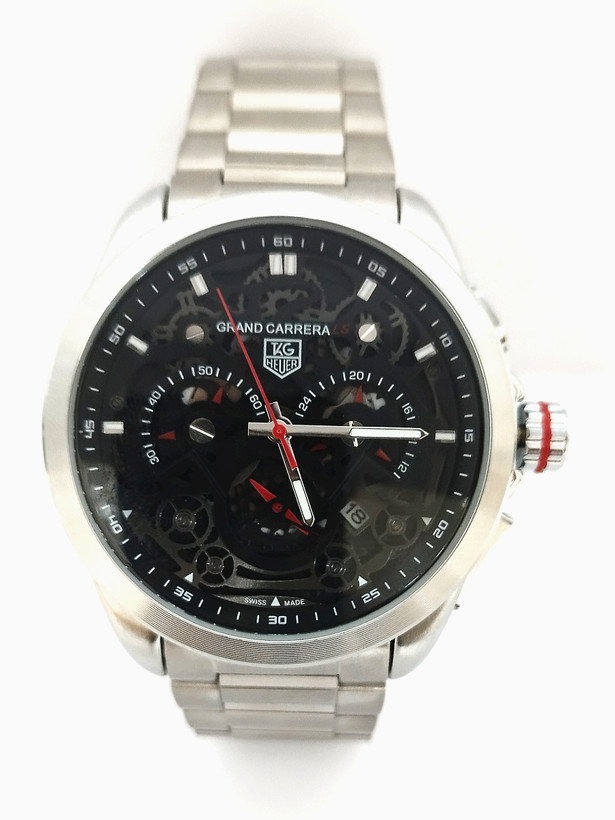ساعت مچی مردانه و پسرانه برند تگ هویر در رنگ نقره ای بند استیل و صفحه مشکی رنگ