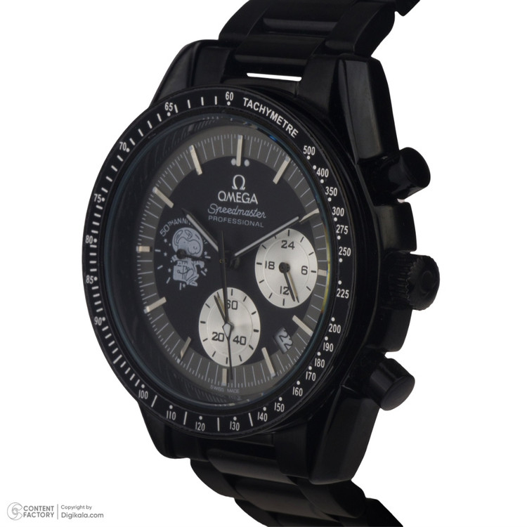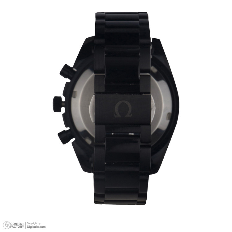 ساعت مچی پسرانه و دخترانه برند امگا در رنگ مشکی بند استیل و صفحه مشکی رنگ