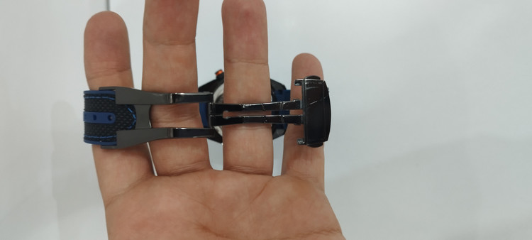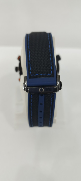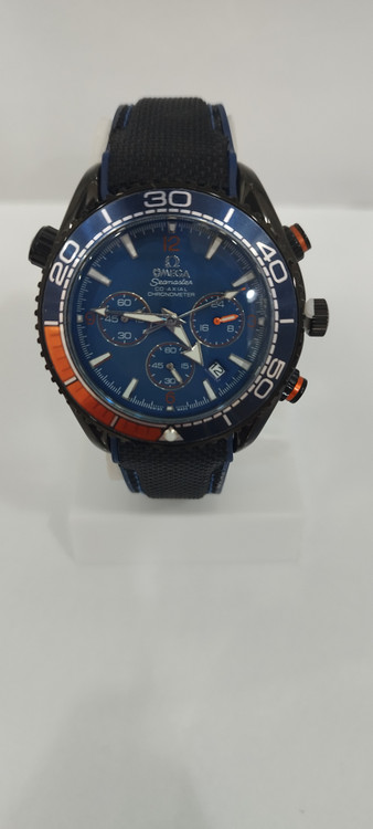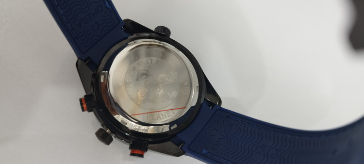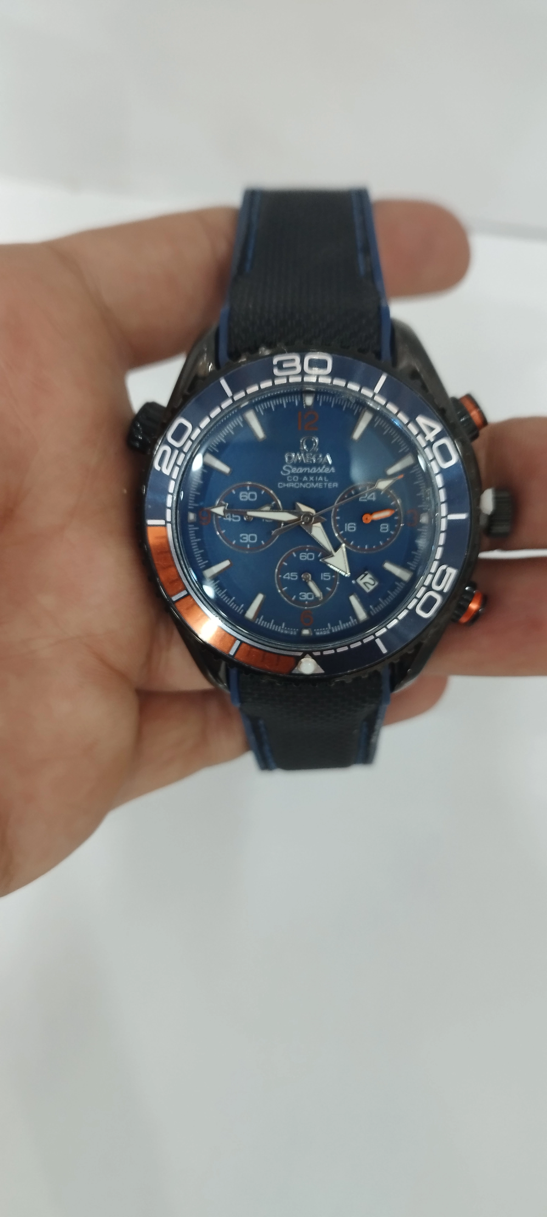 ساعت مچی اسپرت مردانه و زنانه برند امگا OMEGA سه موتوره ضد آب بند سیلیکونی نخی در رنگ مشکی و صفحه آبی نفتی