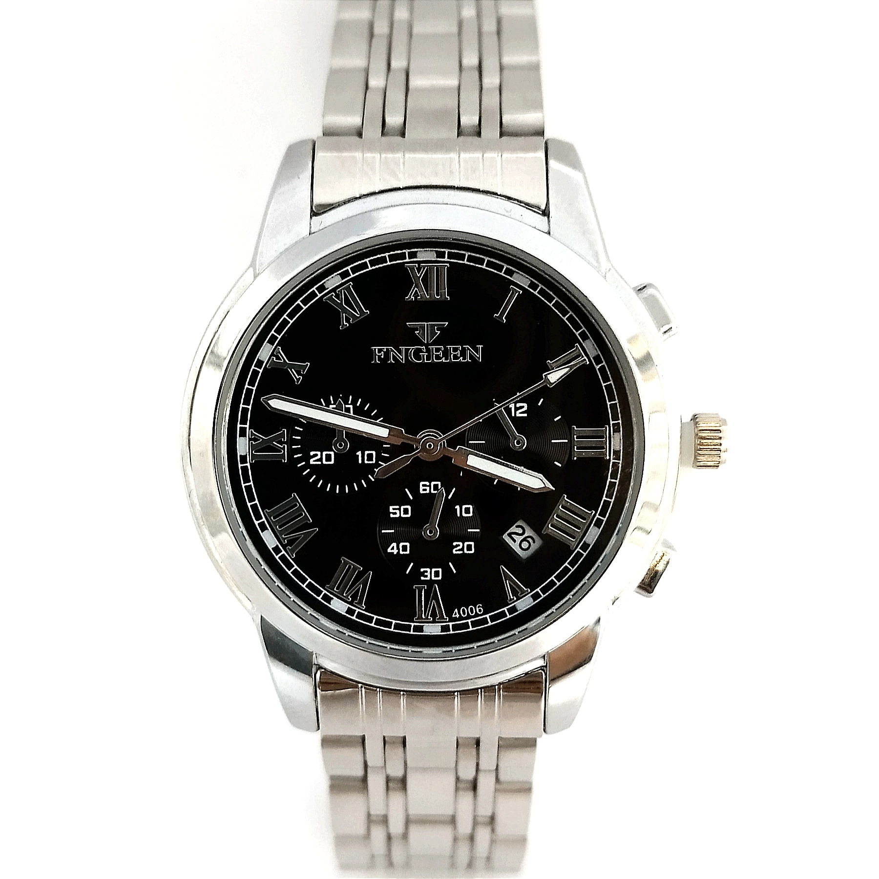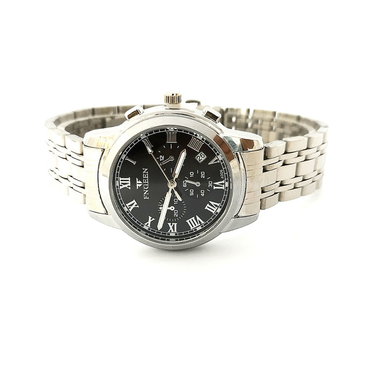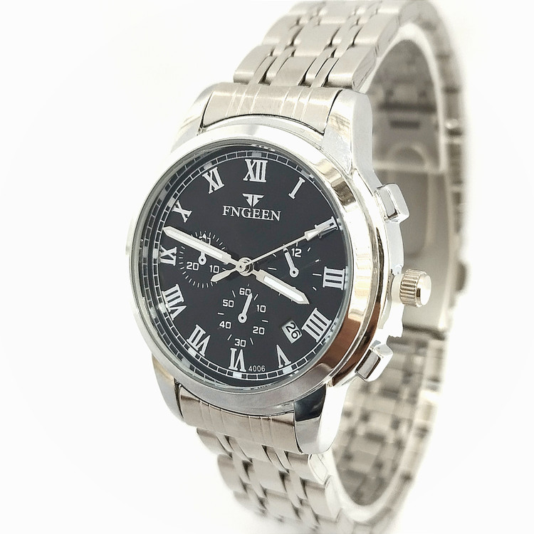 رنگ صفحه مشکی بند استیل رنگ ثابت نقره ای رنگ.