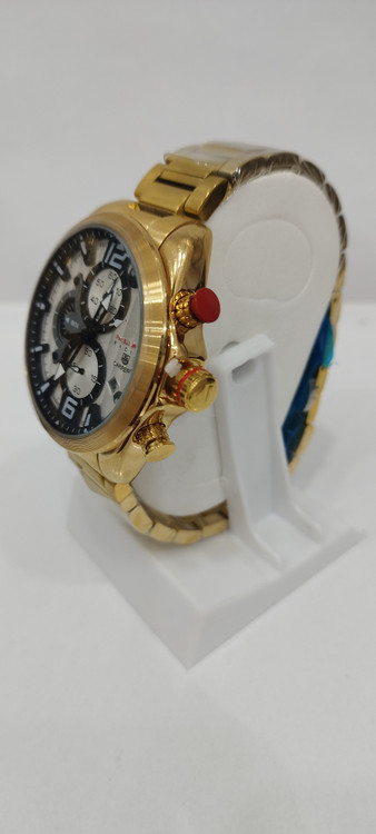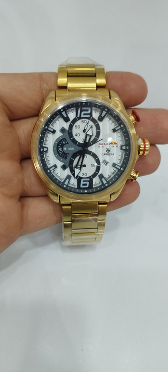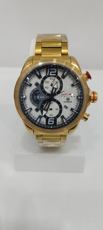 ساعت مچی مردانه برند رد بول راکینگ Red Bull racing سه موتوره فعال ضد آب در حد بند فلزی استیل در رنگ طلایی و صفحه سفید رنگ