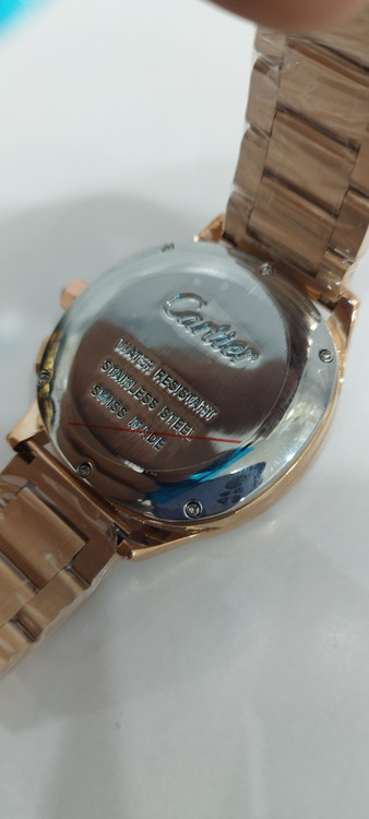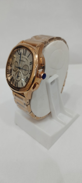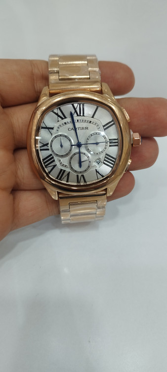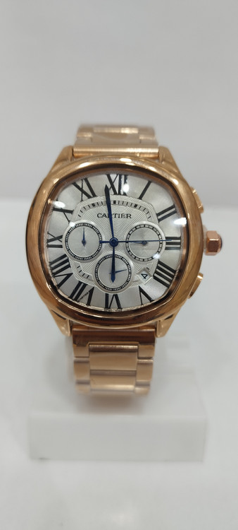 ساعت مچی مردانه و زنانه برند کارتیر Cartier سه موتوره فعال ضد آب در حد بند فلزی رنگ رز صفحه سفید رنگ