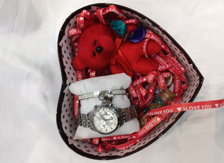 باکس کادو هدیه ولنتاین دخترانه ساعت دستبند بنگل