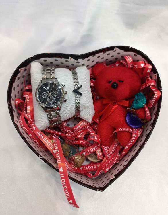 باکس کادو ولنتاین هدیه دخترانه ساعت دستبند بنگل