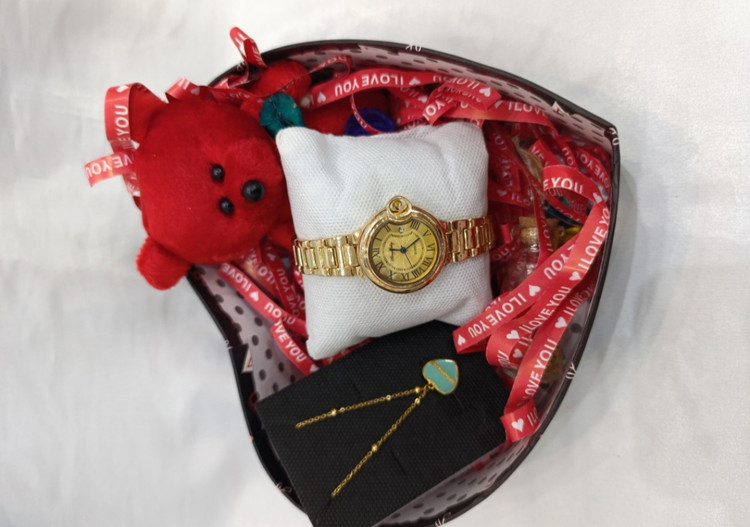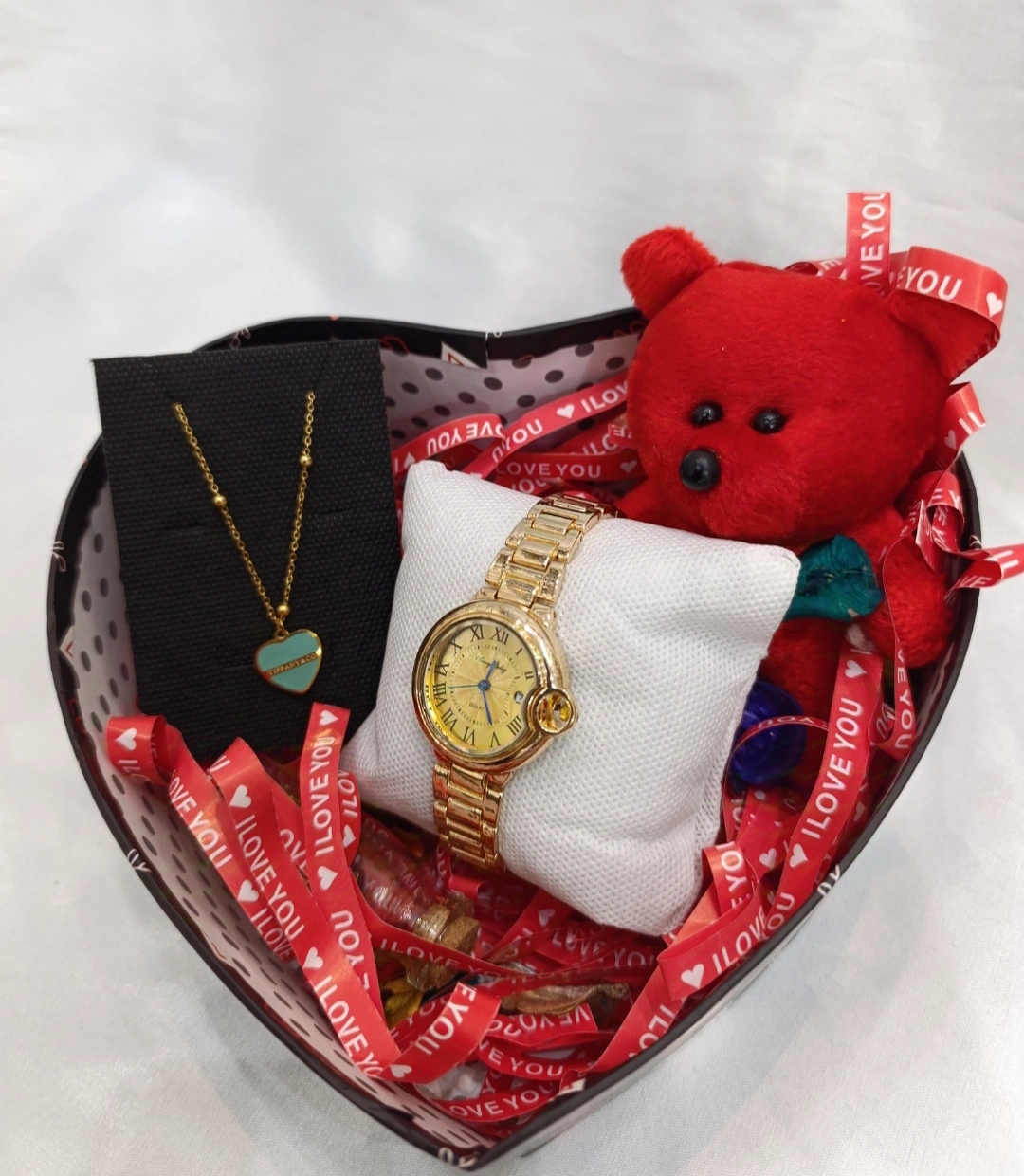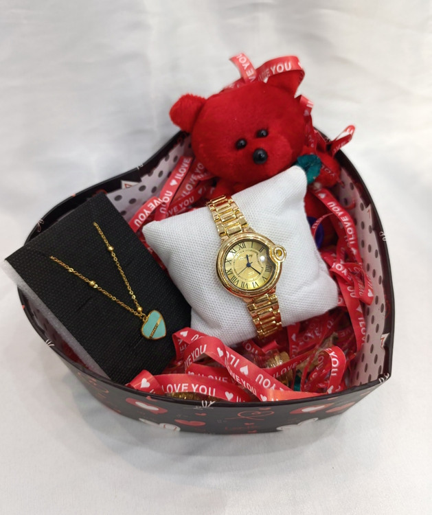 باکس کادو ولنتاین هدیه دخترانه ساعت و گردنبند