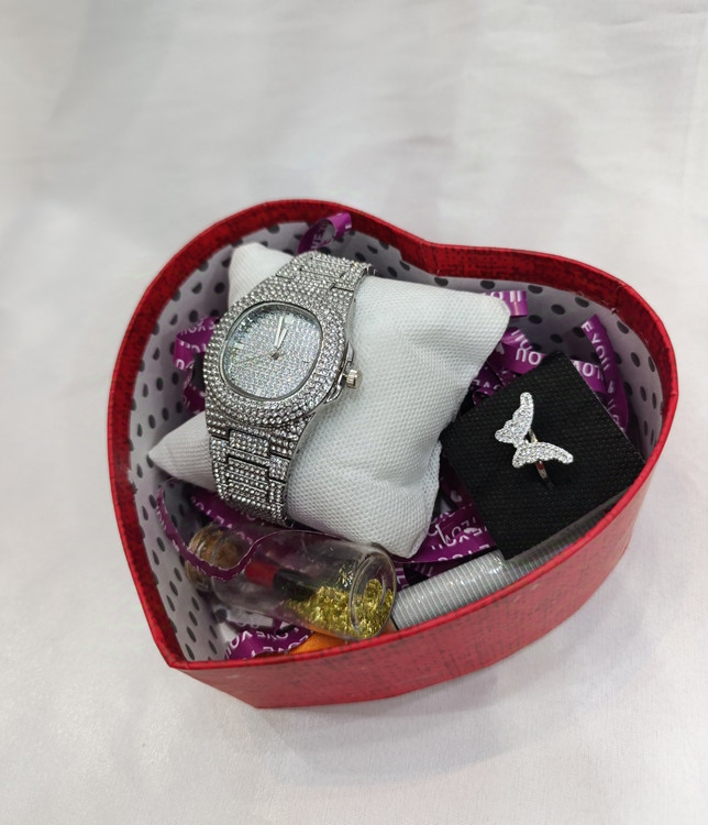 باکس کادو ولنتاین هدیه دخترانه ساعت و انگشتر