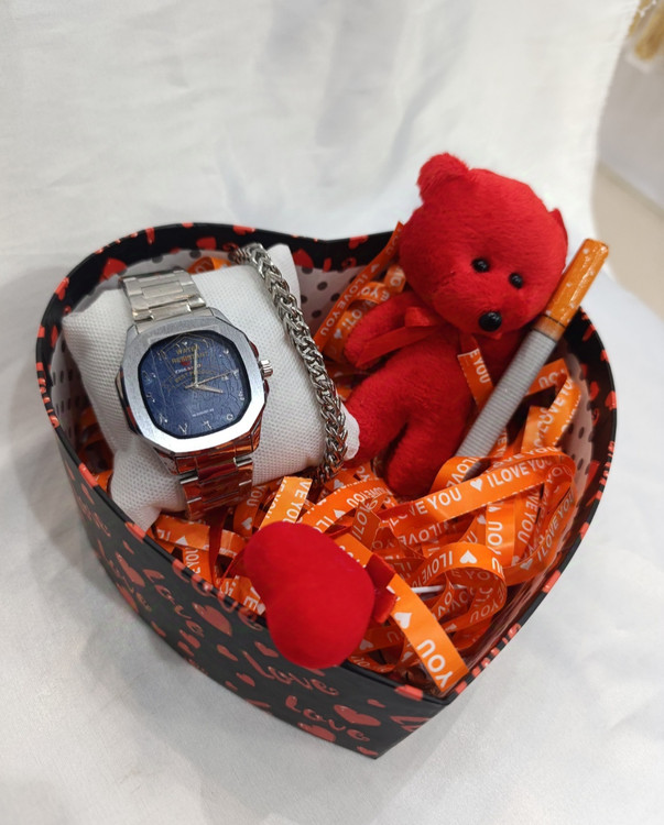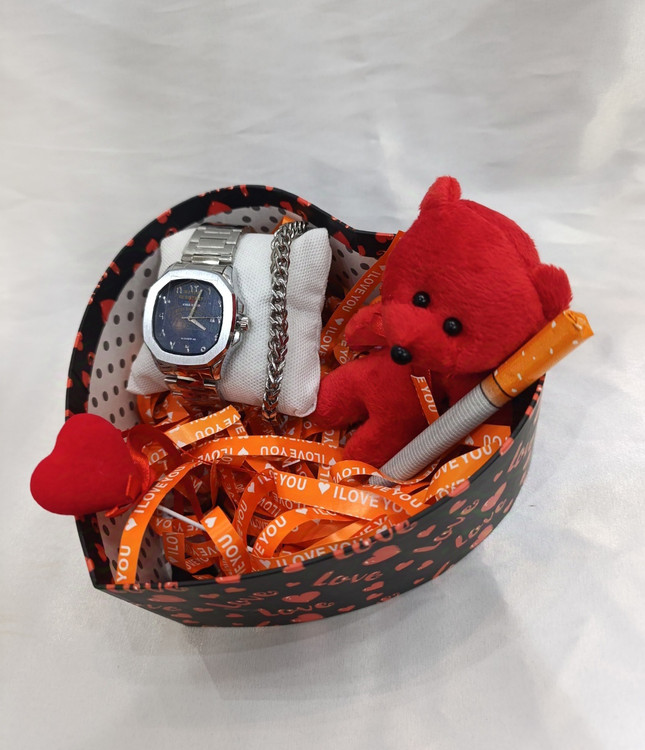 باکس کادو ولنتاین هدیه پسرانه ساعت و دستبند نقره ای