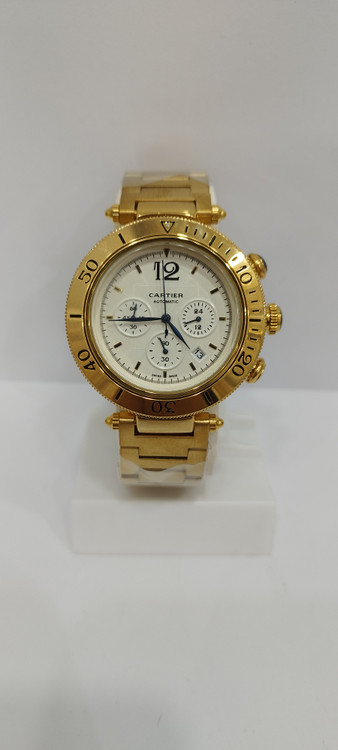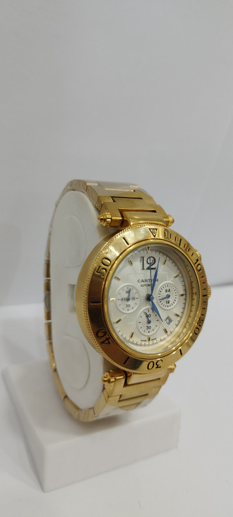 ساعت مچی پسرانه و دخترانه برند کارتیر سه موتوره فعال ضد آب در حد بند فلزی استیل در رنگ طلایی و دور صفحه طلایی و صفحه سفید رنگ