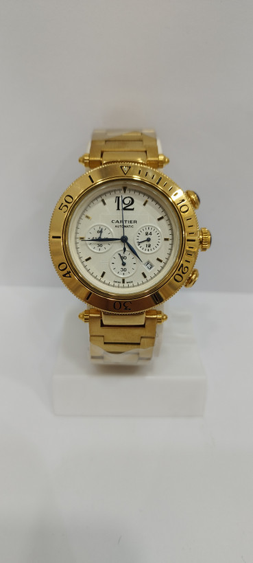 ساعت مچی پسرانه و دخترانه برند کارتیر سه موتوره فعال ضد آب در حد بند فلزی استیل در رنگ طلایی و صفحه سفید رنگ