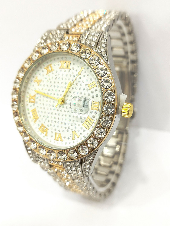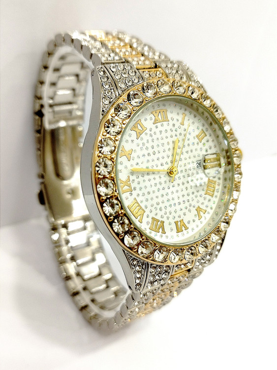 ساعت نگین دار دخترانه و پسرانه فول نگین در رنگ طلایی و نقره ای